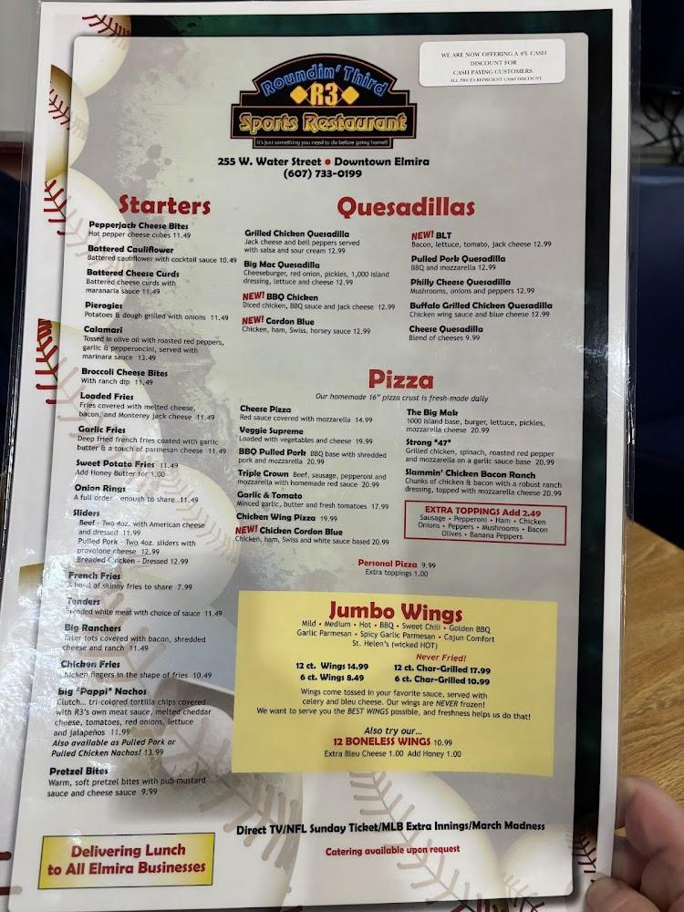 Welcome to Roundin Third, Elmira's premier sports bar and grill located at 255 W Water St! Enjoy a relaxed atmosphere while indulging in a delightful range of food and drinks, from exceptional cocktails to a diverse selection of beers. Join us for live concerts, quiz nights, and exciting sports events that make every visit memorable. With amenities like wheelchair accessibility, free Wi-Fi, and a family-friendly environment, Roundin Third is perfect for groups and solo diners alike. Whether you're here for takeout or a sit-down meal, experience the fun and flavor that define our vibrant local hangout!